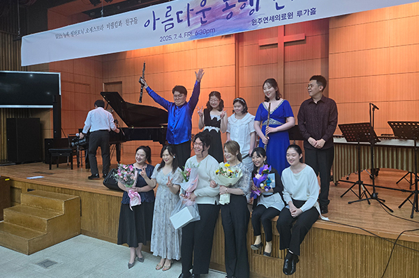 正好學校負責打擊樂的吳國瑄老師在韓國演出,所以大家一起參加了。
